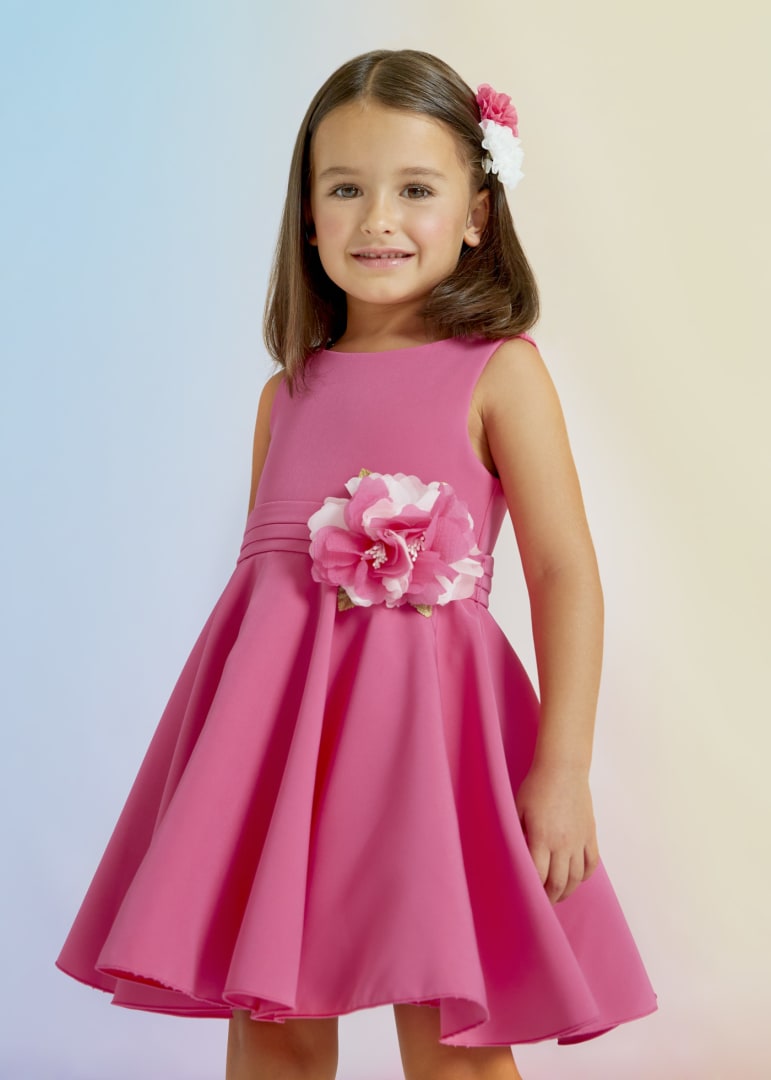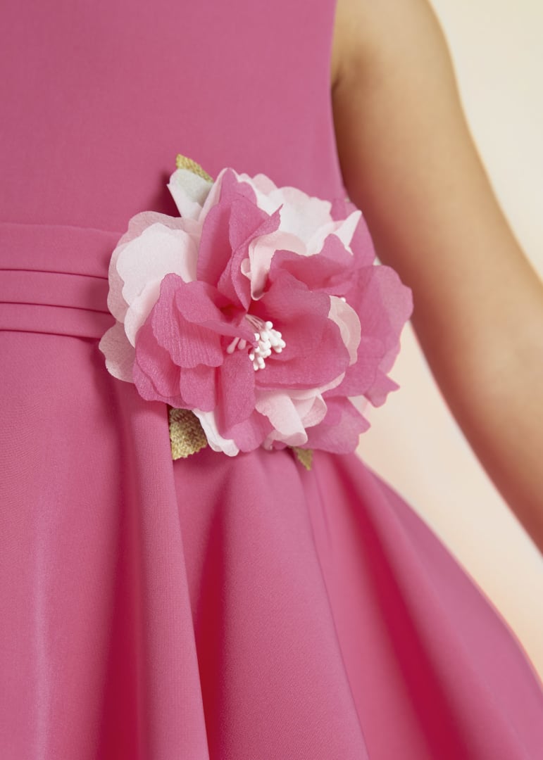 Abito in crepe fucsia tinta unita per bambina.