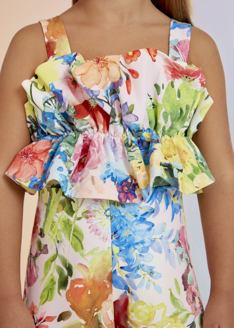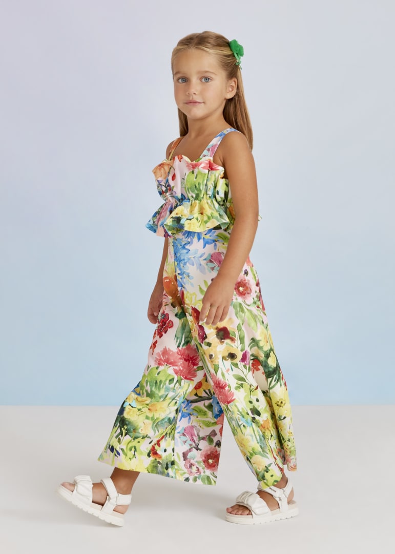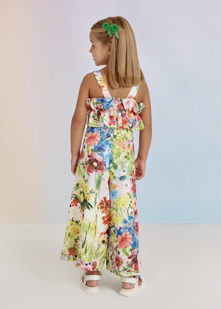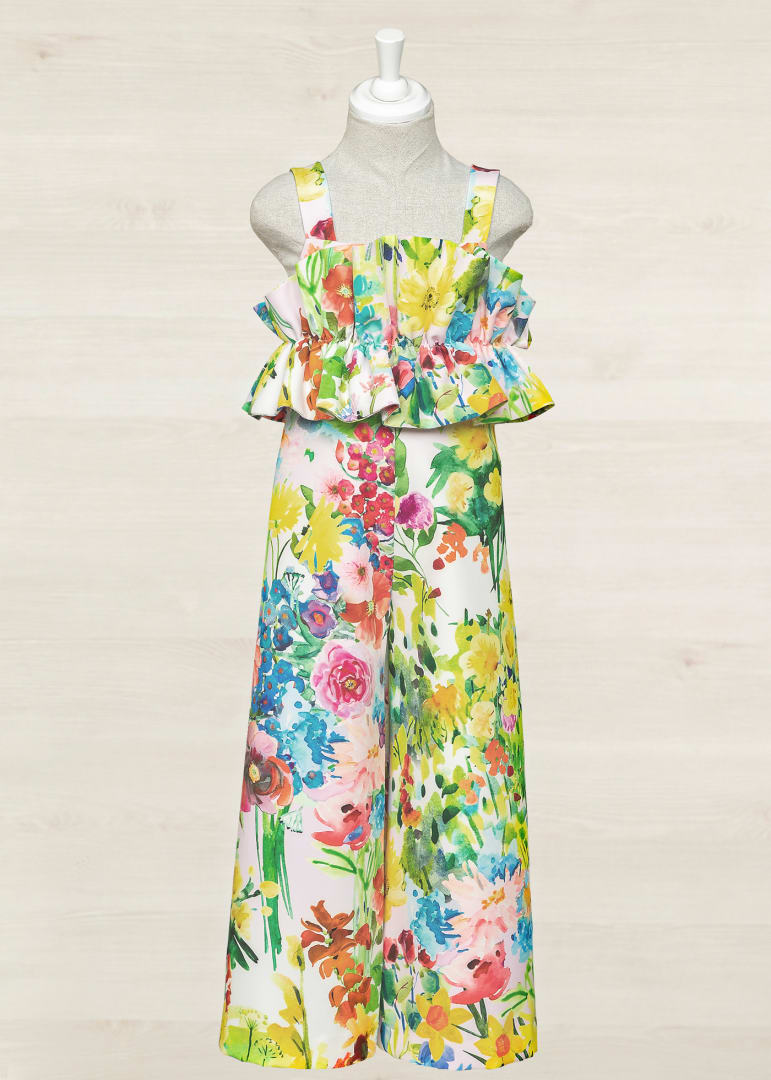 Tuta lunga in crêpe con stampa fiori.