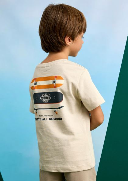 Maglietta manica corta per bambino. Elementi decorativi: disegno nella parte anteriore e posteriore del capo. Scegliendo i nostri prodotti in cotone, supporti il nostro impegno nell'iniziativa Better Cotton. Il cotone Better Cotton è ottenuto attraverso un sistema di bilancio di massa e non può essere fisicamente ricondotto ai prodotti finali. tuttavia, i produttori di cotone beneficiano della domanda di Better Cotton in volumi equivalenti.