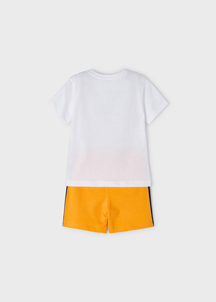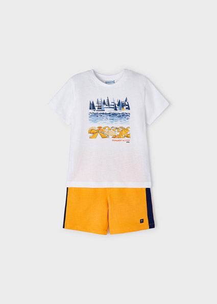 Pantalone corto modello bermuda per bambino. Cintura con cordoncino interno regolabile. Tessuto 100% cotone. Tasche funzionali nella parte anteriore e posteriore del capo.