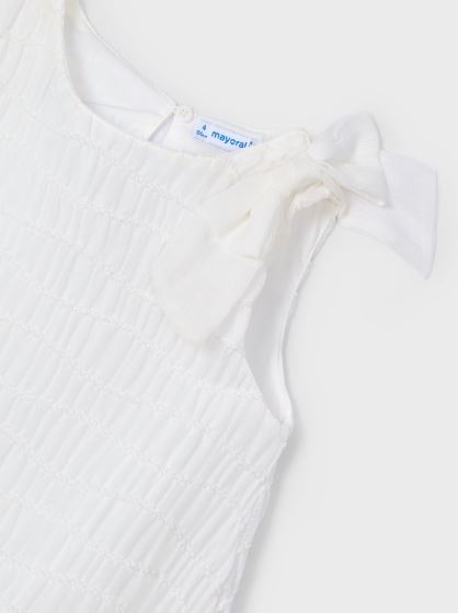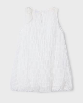 Vestito senza manica per bambina. Girocollo. Chiusura con bottone nascosto per un vestibilità semplice e veloce. Tessuto bambula morbido e fresco. Modello con fodera interna. Orlo elasticizzato per una migliore vestibilità. Elementi decorativi: fiocco. Questo esclusivo articolo appartiene alla collezione Cerimonia ed è stato pensato per ricorrenze, eventi e occasioni speciali.