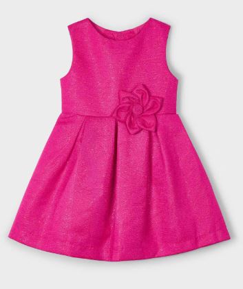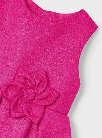 Vestito senza manica per bambina. Girocollo. Apertura posteriore con cerniera invisibile. Design con apertura sulla schiena. Modello con riccio. Elementi decorativi: applicazione floreale. Questo esclusivo articolo appartiene alla collezione Cerimonia ed è stato pensato per ricorrenze, eventi e occasioni speciali. Tessuto strutturato e lucente.
