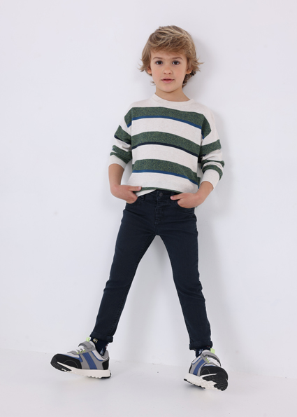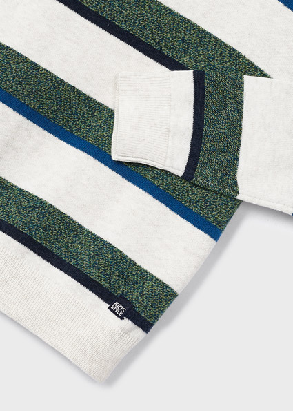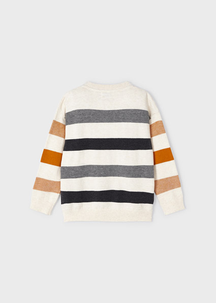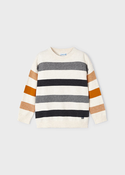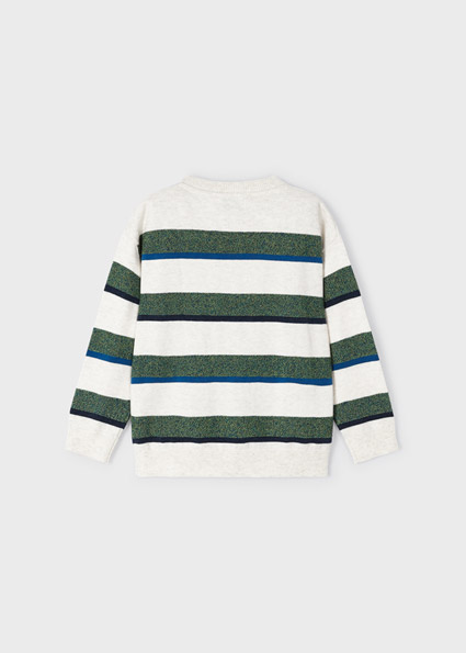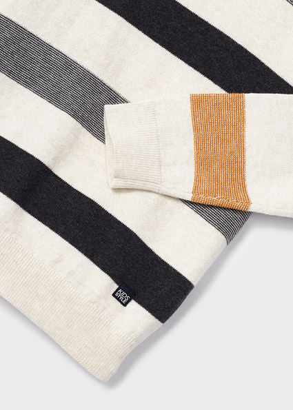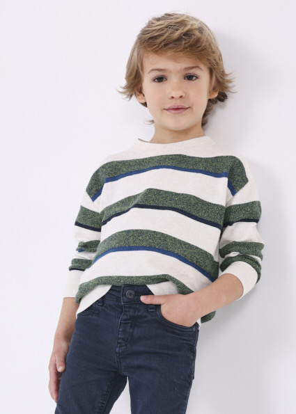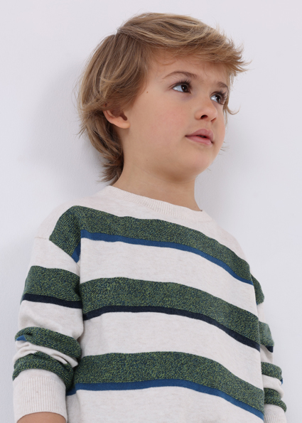 Maglione manica lunga per bambino con polsini elasticizzati. Silhouette dalla linea morbida con spalle scese. Tessuto di lana. Orlo con elastico per una migliore vestibilità. Trama a righe.
