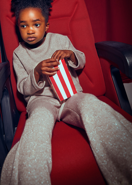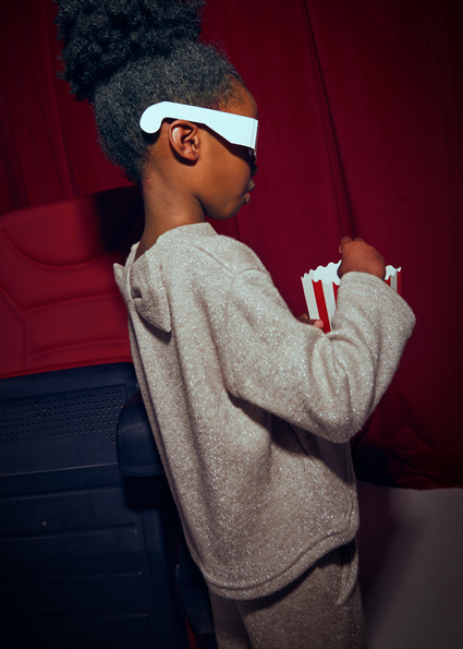 Maglione casual per bambina. Girocollo. Tessuto in tricot morbido al tatto. Elementi decorativi: fiocco