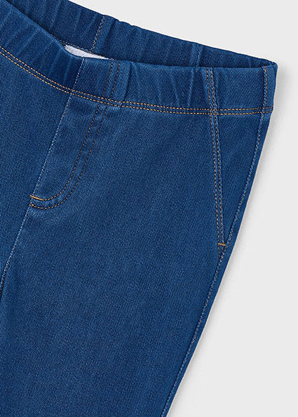Legging per bambina, taglio aderente dai fianchi alle ginocchia e a campana verso il basso. Vestibilità normale. Elastico in vita. Modello con pinces. Finte tasche anteriori decorative.
