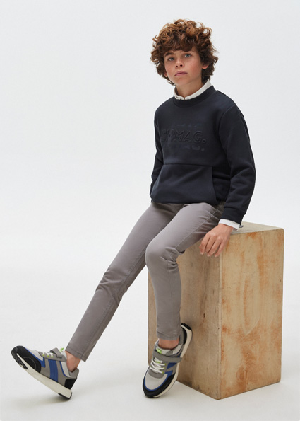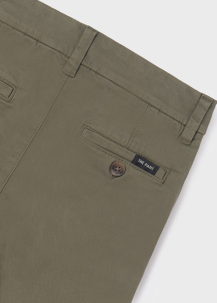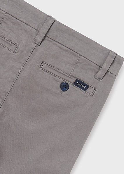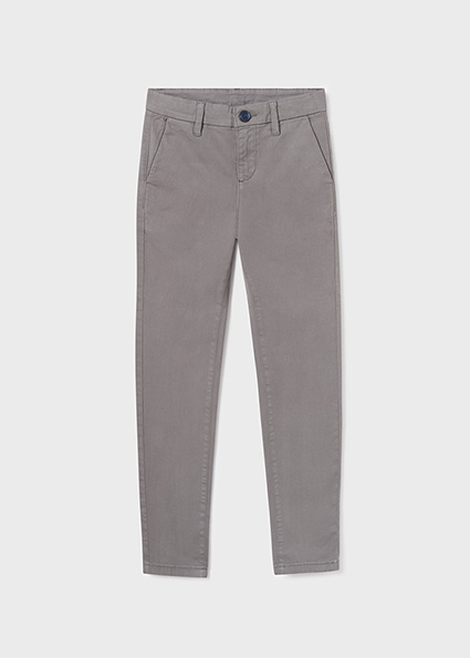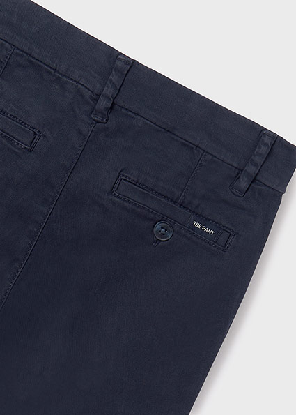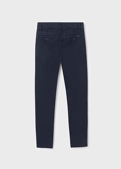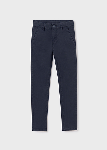 Pantalone per ragazzo modello chino e taglio retto perfetto per le occasioni più eleganti. Chiusura con cerniera e bottone. Tasche funzionali nella parte anteriore e posteriore del capo.