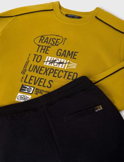 Felpa manica lunga per ragazzo con polsini elasticizzati. Comodo tessuto leggero e morbido di felpa (pile). Orlo elasticizzato per una migliore vestibilità. Texto a modo decorativo.