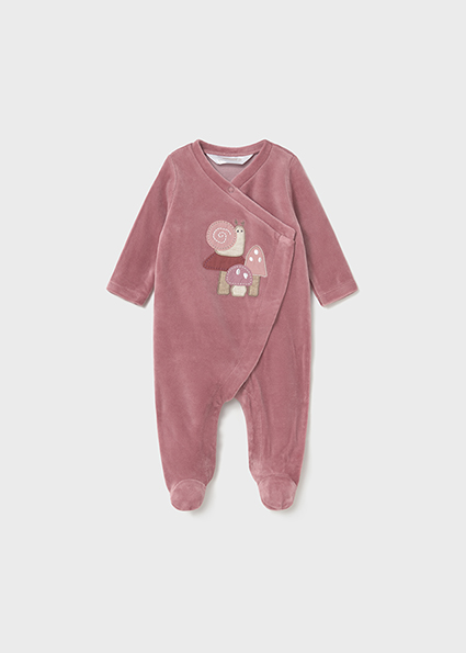 Pigiama manica lunga per neonata. Scollo incrociato e apertura laterale completa con bottoni a pressione. Chiusura con bottoni a pressione nell'interno cosce per agevolare la vestibilità.