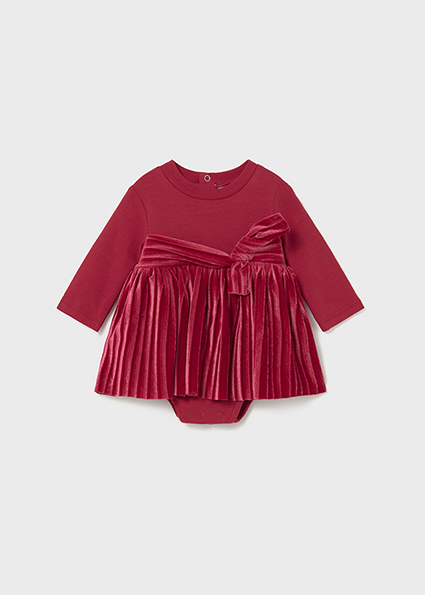 Pagliaccetto manica lunga per neonata. Dolcevita. Chiusura con bottoni a pressione nella parte posteriore. Chiusura con bottoni a pressione nell'interno cosce per agevolare la vestibilità. Confezione in diversi tessuti per ottenere un design unico e speciale. Elementi decorativi: fiocco.
