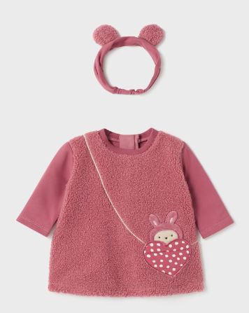 Vestito manica lunga per neonato. Chiusura posteriore con cerniera nascosta.