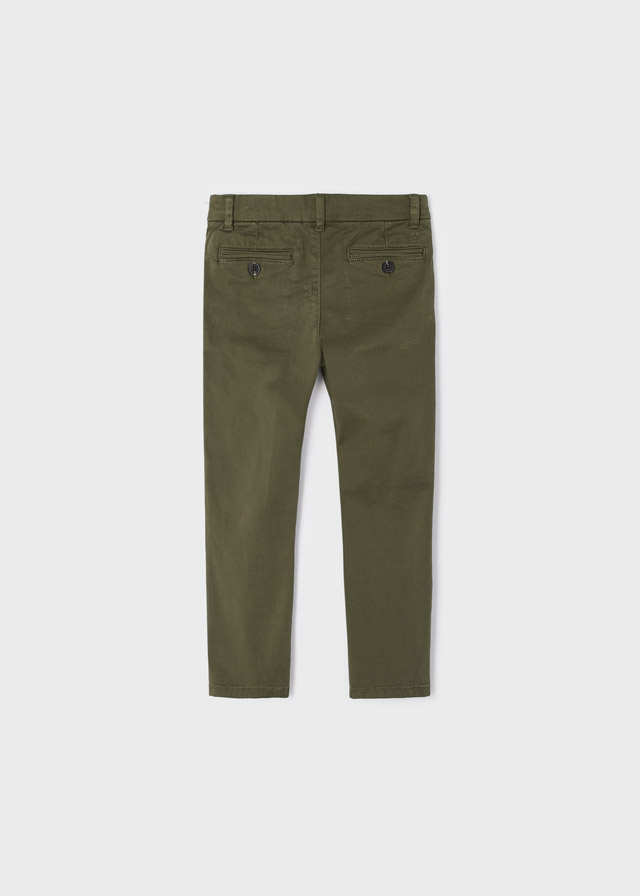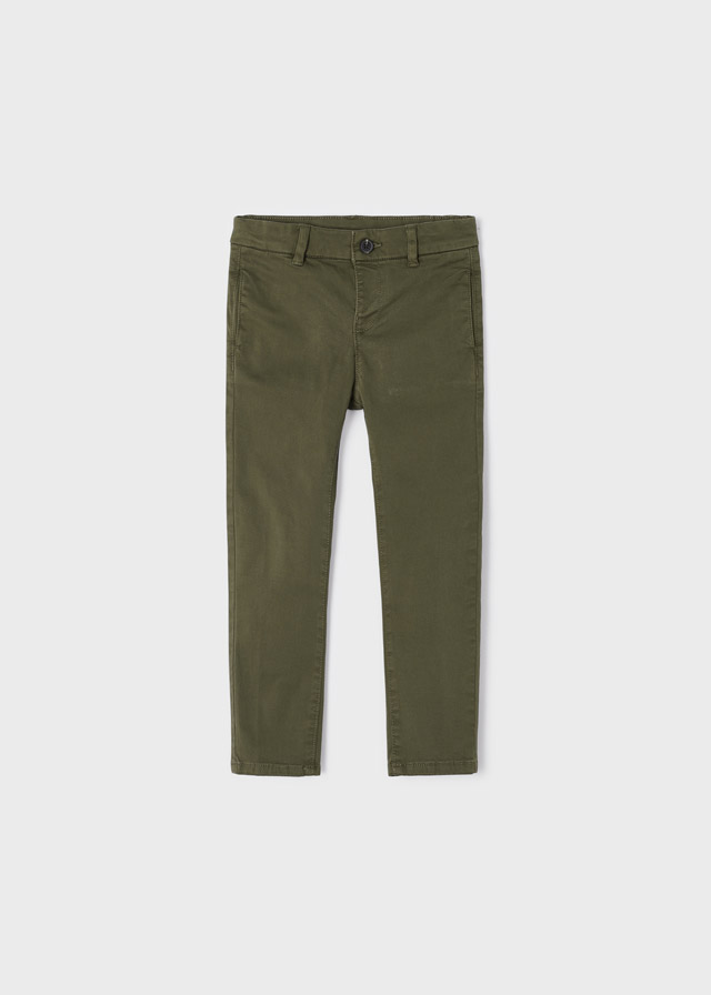Capo ECOFRIENDS contiene cotone organico. Pantalone modello chino per bambino con taglio slim fit che definisce la siluette senza rinunciare all'eleganza. Chiusura con un unico bottone. Le taglie da 6 a 9 sono dotate di cerniera per agevolare la vestibilità. Questo articolo presenta un bagno di colore speciale; per questo motivo le rifiniture potrebbero non essere uniformi o il colore potrebbe variare con i lavaggi.