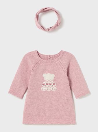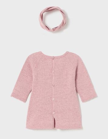 Vestito abbinato a un delizioso cerchietto per neonata. Tessuto tricot morbido e piacevoleal tatto.